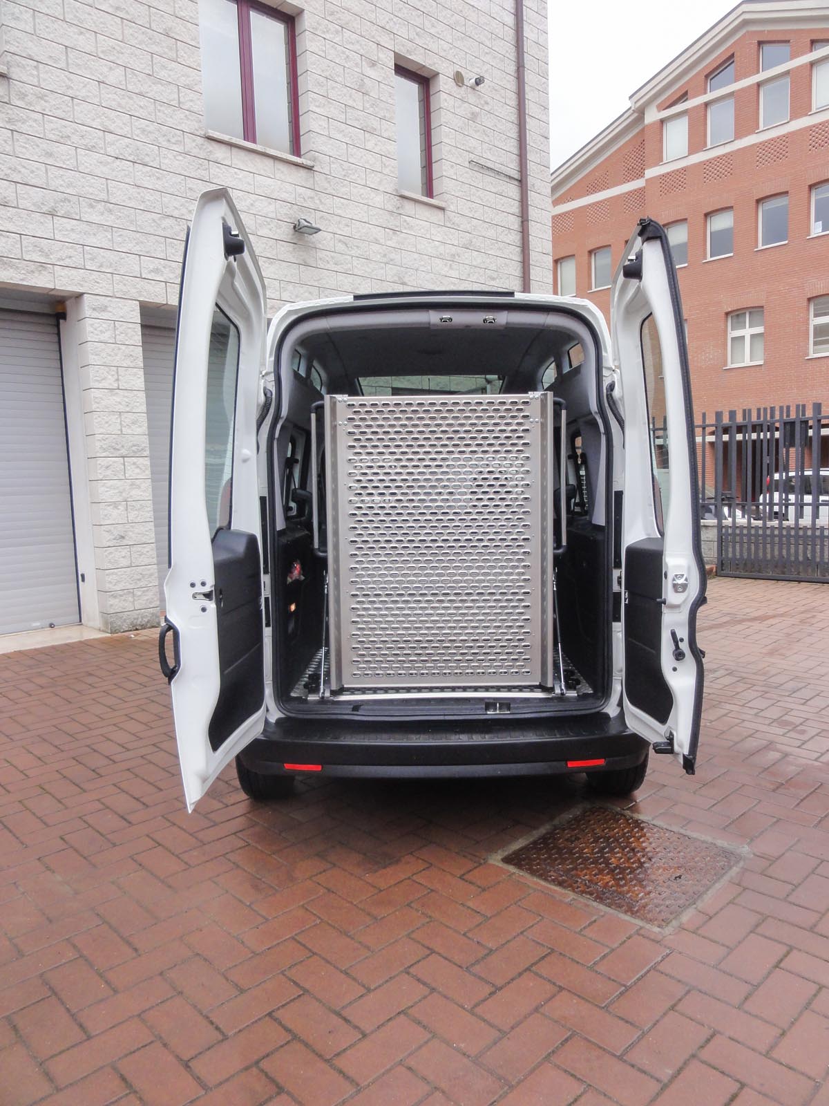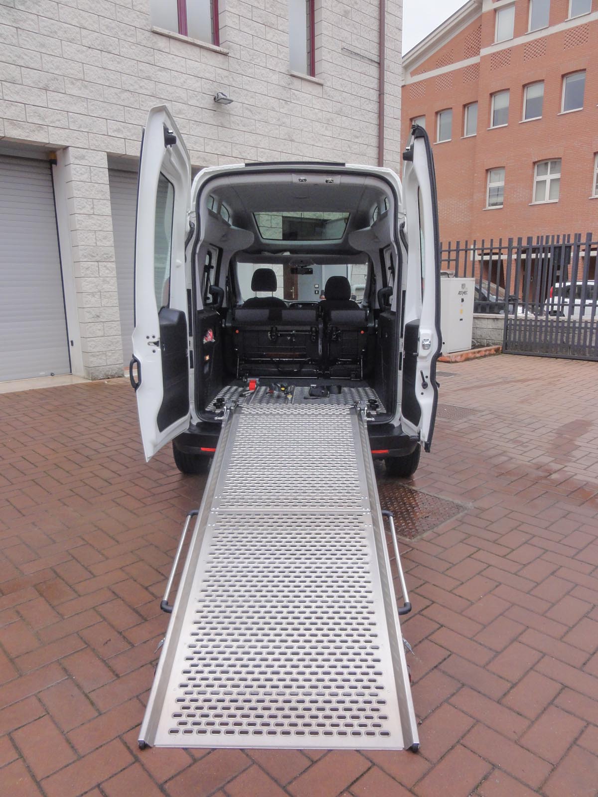Uno con pedana idraulica e uno con pedana manuale, per la salita e la discesa di persone costrette a muoversi in carrozzina e per il trasporto di persone disabili. La pedana facilita la salita e la discesa del traportato con la carrozzina in dotazione al mezzo cha viene ancorata ad un apposito aggancio durante la fase di marcia del veicolo. Questi mezzi sono, inoltre, adatti per il trasporto di persone disabili in quanto dotati di seggiolini omologati per questo tipo di utenti.